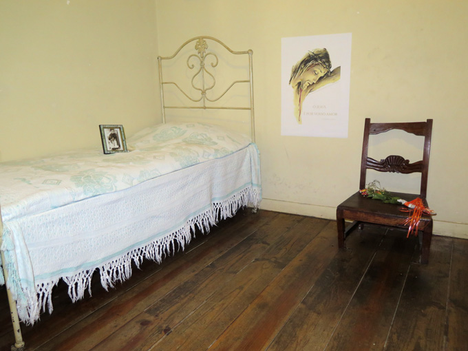 Schließlich kommt eine Fußgängerin vorbei, die uns sagt, was zu tun ist: Klingeln und geduldig abwarten. Die Ordensschwestern (Klarissenschwestern vom Unbefleckten Herzen Mariens) würden arbeiten, dann aber kommen und uns hochführen in Jacintas Zimmer.