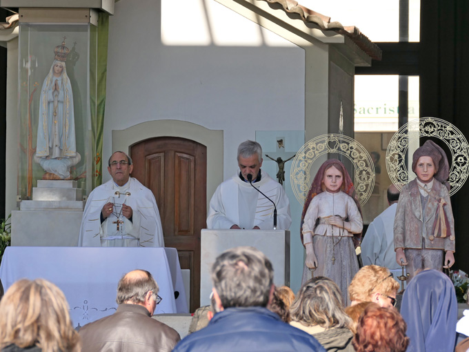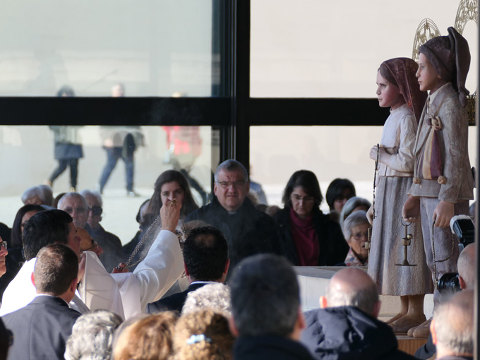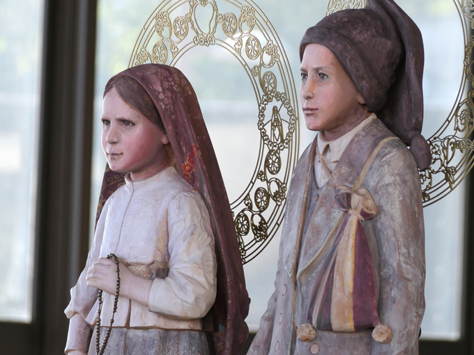 von Jacinta und Francisco in die Dreifaltigkeitsbasilika getragen wurden.