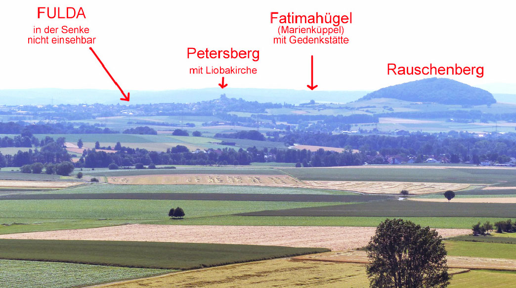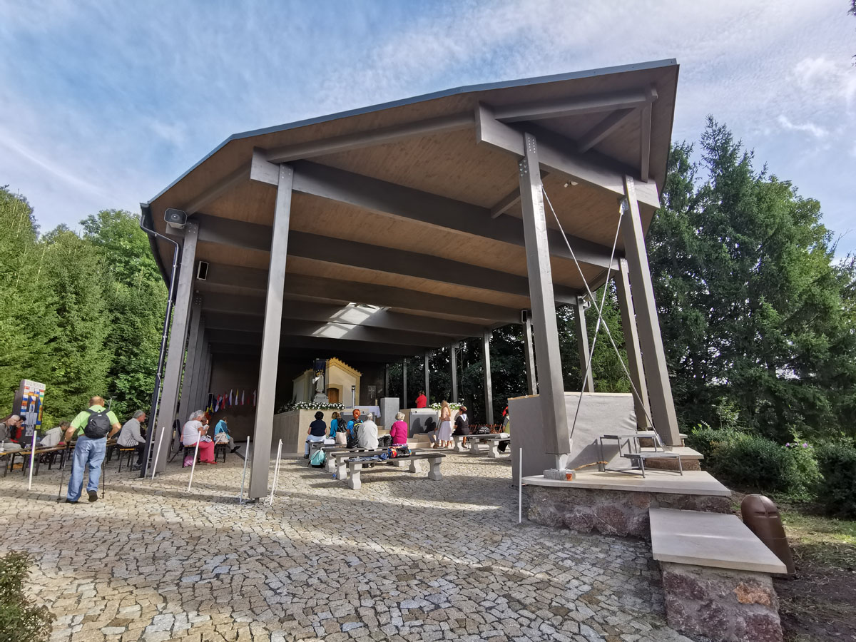 Wenn man das erlebt und auch anderen mitgeteilt hat, dann kommt der Wunsch hoch, auch im eigenen Land eine solche Capelinha zu bauen. Tatsächlich hat der ehemalige internationale Präsident des Fatima-Weltapostolates, Prof. Americo Lopez-Ortis, bei seinem Besuch im Zentrum des deutschen Fatima-Weltapostolates in Petersberg bei Fulda im Jahr 2015 einen entsprechenden Vorschlag gemacht. Er schlug vor, auf dem sogenannten „Marienküppel“ am Petersberg, auf dem sich eine Gebetsstätte des Fatima-Weltapostolates mit einer Darstellung des Christkönigs und der Fatima-Madonna befindet, eine Replik der Capelinha zu errichten. Dieser Vorschlag erschien damals illusorisch, nicht nur wegen der zu erwartenden Kosten, der fehlenden Baugenehmigung und Widerständen aller Art, sondern auch wegen der „Hanglage“. Die Hanglage scheint aber, wie wir es in Koclirov gesehen haben, kein Hindernis zu sein. Der Vorschlag des Marienküppels scheint nun vielmehr eine besonders gute Wahl zu sein: Zwischen den Gräbern der hl. Lioba und des hl. Bonifatius gelegen. Mit Blick auf das sogenannte Fulda-Gap, wo im kalten Krieg ein militärischer Angriff aus dem Osten, von Russland her, erwartet worden ist. Mit Blick auch auf die ehemalige innerdeutsche Grenze, eingedenk der vielen Wunden und Verletzungen, die sich die Menschen hier gegenseitig zugefügt haben und unter denen sie und ihre Nachkommen bis heute zu leiden haben. Ohne Heilung der Wunden der Vergangenheit, ohne wahre tiefe Vergebung, kann es keinen wahren Frieden geben. Das Gebet des Rosenkranzes in Vereinigung mit Maria soll dabei helfen. Gerade auch in den verschiedenen Repliken der Capelinha, die im Laufe der Zeit erbaut werden sollen.