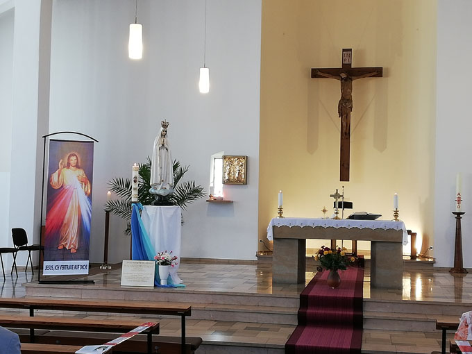 Pfarrer Zuk hatte alles sehr gut vorbereitet, der Rosenkranz wurde gebetet, anschließend heilige Messe.