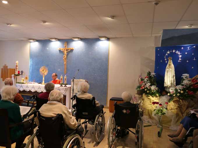Die Zeit, die die Schwestern und die Heimbewohner mit der Pilgermadonna verbringen durften, ging schnell, allzu schnell, vorüber: hl. Messe, Andacht, Rosenkranz, eucharistische Anbetung, Segen, Marienweihe. Getröstet und gestärkt geht es nun weiter voran.