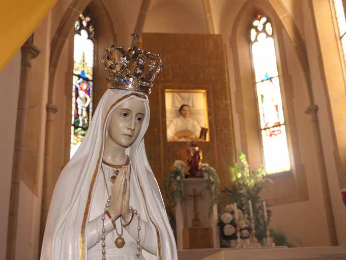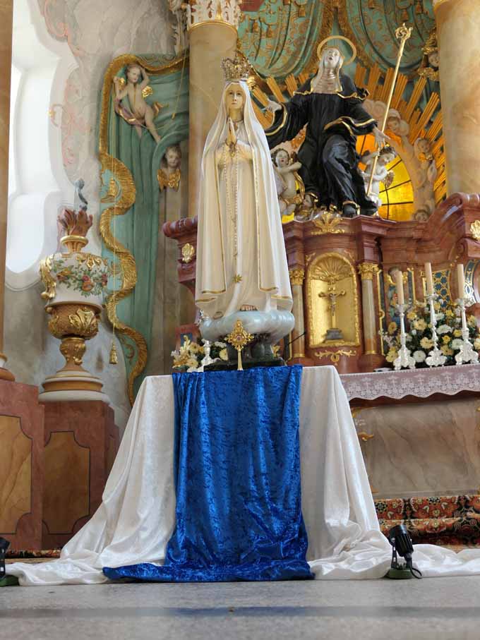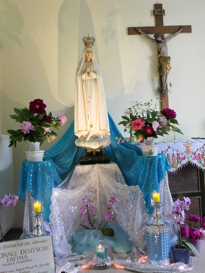 Fatima-Pilgermadonna mit dem Reliquiar der hl. Kinder von Fatima in der Kirche der hl. Ottilia in Hellring{imageshow sl=16 sc=3 /}