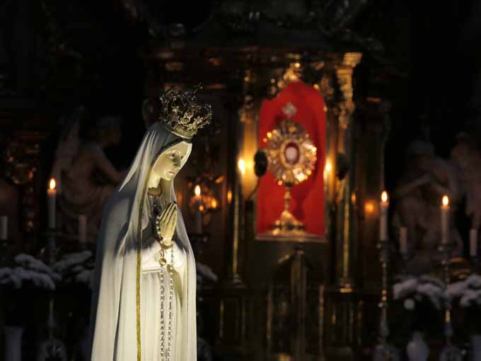 Eucharistische Nachtanbetung. Die Muttergottes an der Seite ihres eucharistischen Sohnes.