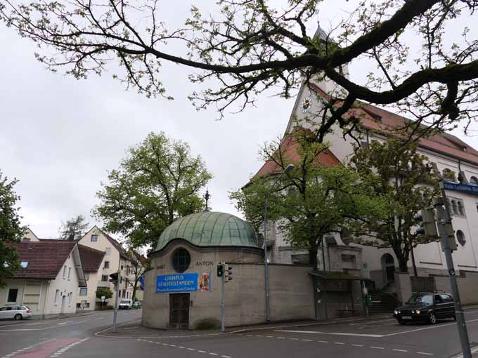 Die ursprünglich geplante hl. Messe mit der Pilgermadonna musste leider corona-bedingt entfallen. Aber wir konnten die Monstranz in Empfang nehmen, und die Pilgermadonna besuchte zumindest kurz die Pfarrkirche St. Anton. Hierbei handelt es sich um die Klosterkirche eines ehemaligen Kapuzinerklosters, das von Altötting aus gegründet worden ist. Am Seitenaltar befindet sich eine Kopie des Gnadenbildes von Altötting. Daneben die Figur des hl. Bruder Konrad.