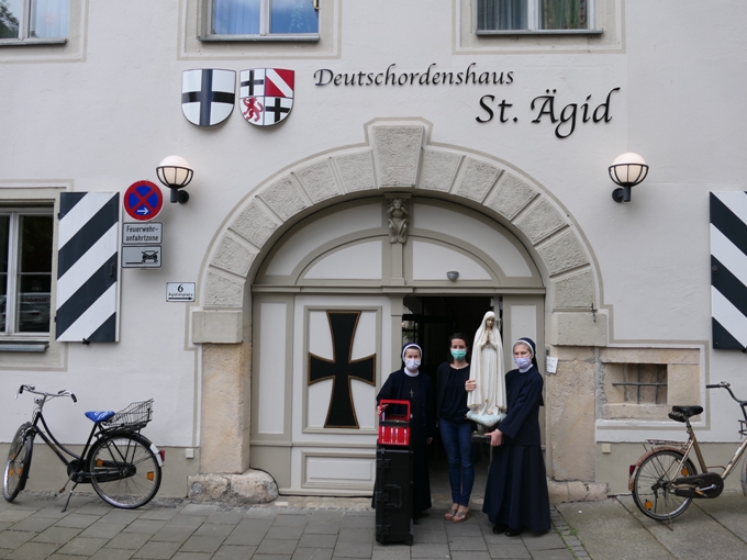 Erfreut wurden die Pilgermadonna, das Reliquiar der hl. Kinder von Fatima, Francisco und Jacinta, sowie die Berufungs-Monstranz in St. Ägid empfangen. Dank Mundschutz, Handschuhen und Abstandsregelungen stellte die Übergabe kein Problem dar.