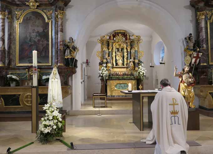Da öffentliche hl. Messen corona-bedingt noch nicht gefeiert werden konnten, wurde die Kirche für das persönliche Gebet, die persönliche stille Anbetung, geöffnet.