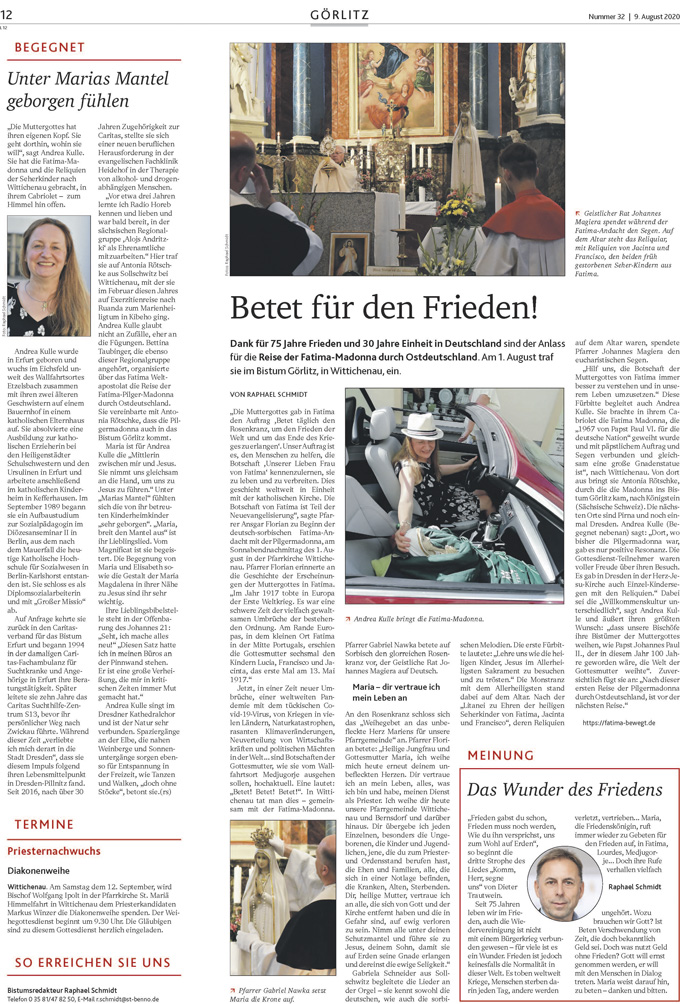 Einen guten Eindruck vom Besuch der Fatima-Pilgermadonna vermittelt der Bericht in der Zeitschrift "Tag des Herrn" 32-2020 (als pdf-herunterladen)